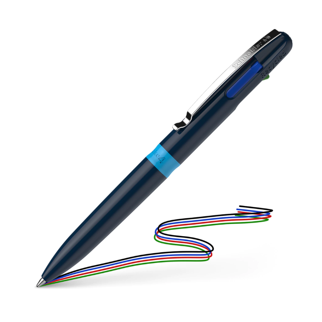 A Take 4 da Schneider é a caneta ideal para quem busca organização. praticidade e versatilidade no dia a dia. Com corpo em azul escuro elegante. ela traz quatro cores em uma só caneta: azul. preta. vermelha e verde. Perfeita para organizar. planejar. estudar e até desenhar!
