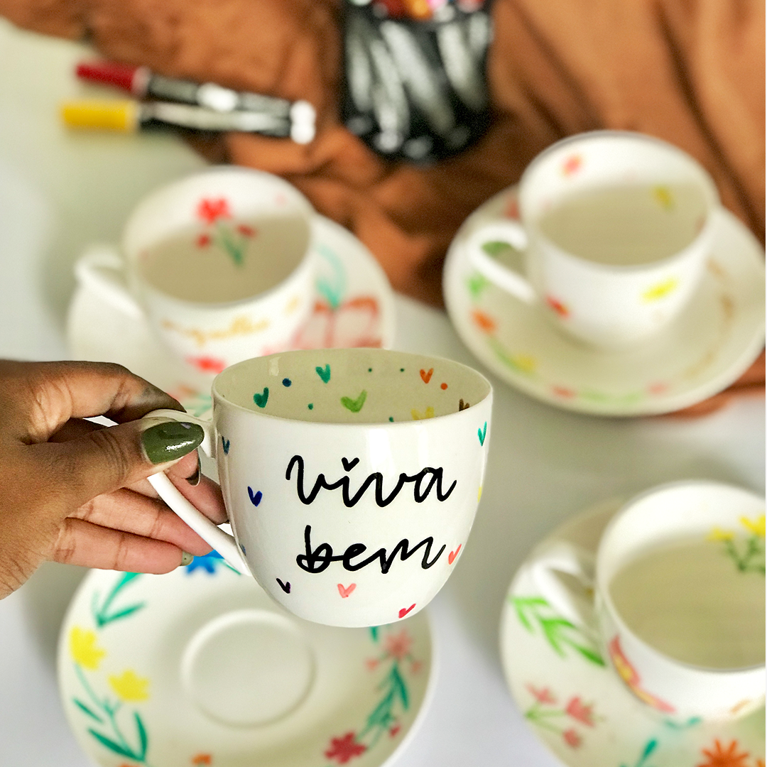 Para garantir a fixação, deixe a peça decorada no forno à 160ºC por 90 minutos.