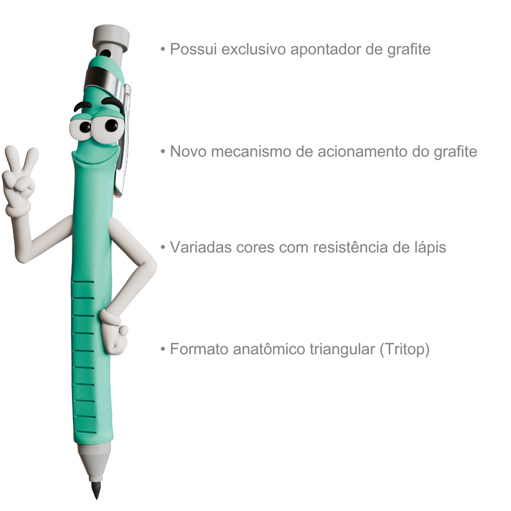 Prepare-se para uma revolução no mundo dos rabiscos! Nossa Lapiseira Tecnico 2,0mm possui um exclusivo apontador de grafite e um novo mecanismo de acionamento do grafite que traz um toque de magia a cada traço. Disponível em variadas cores com resistência imbatível, seu formato anatômico triangular (Tritop) garante conforto total.